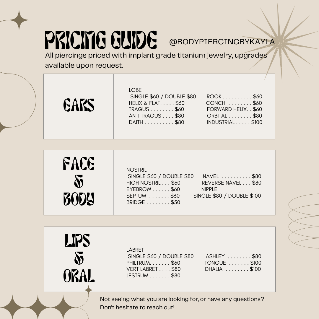 **FOR HEALED PIERCINGS ONLY**